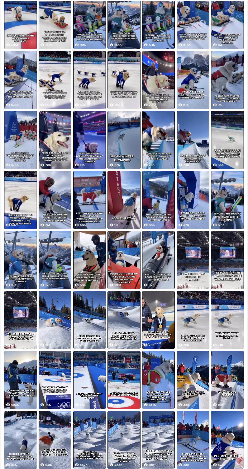 This week Pesto was in Milan at the Winter Olympics and the internet very much approved, generating 65 million views by sliding into cultural relevance with absurd confidence.